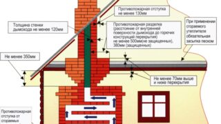 Une coupe intérieure est faite dans la cheminée devant le plafond. Au sommet se trouve l'embouchure du canal de fumée. La doublure est fournie à l'intérieur pour augmenter l'approvisionnement en énergie. Le corps et la doublure ne sont pas liés, car les éléments reçoivent des températures différentes lorsqu'ils sont chauffés.