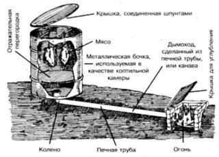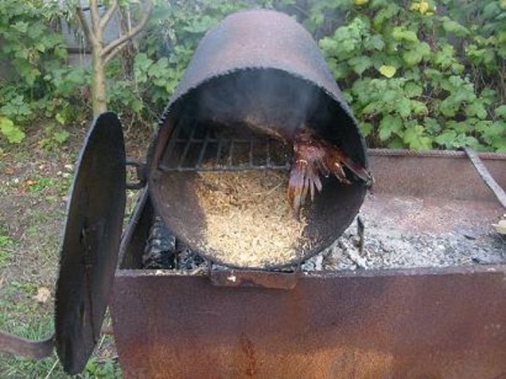 Ils utilisent des barils de fer grands et petits, en conséquence, un fumoir est obtenu à partir d'un conteneur qui n'est pas nécessaire à la ferme. Un tonneau en bois peut également être utilisé pour une chambre de fumage à froid, car la basse température de la fumée ne peut pas enflammer le matériau.