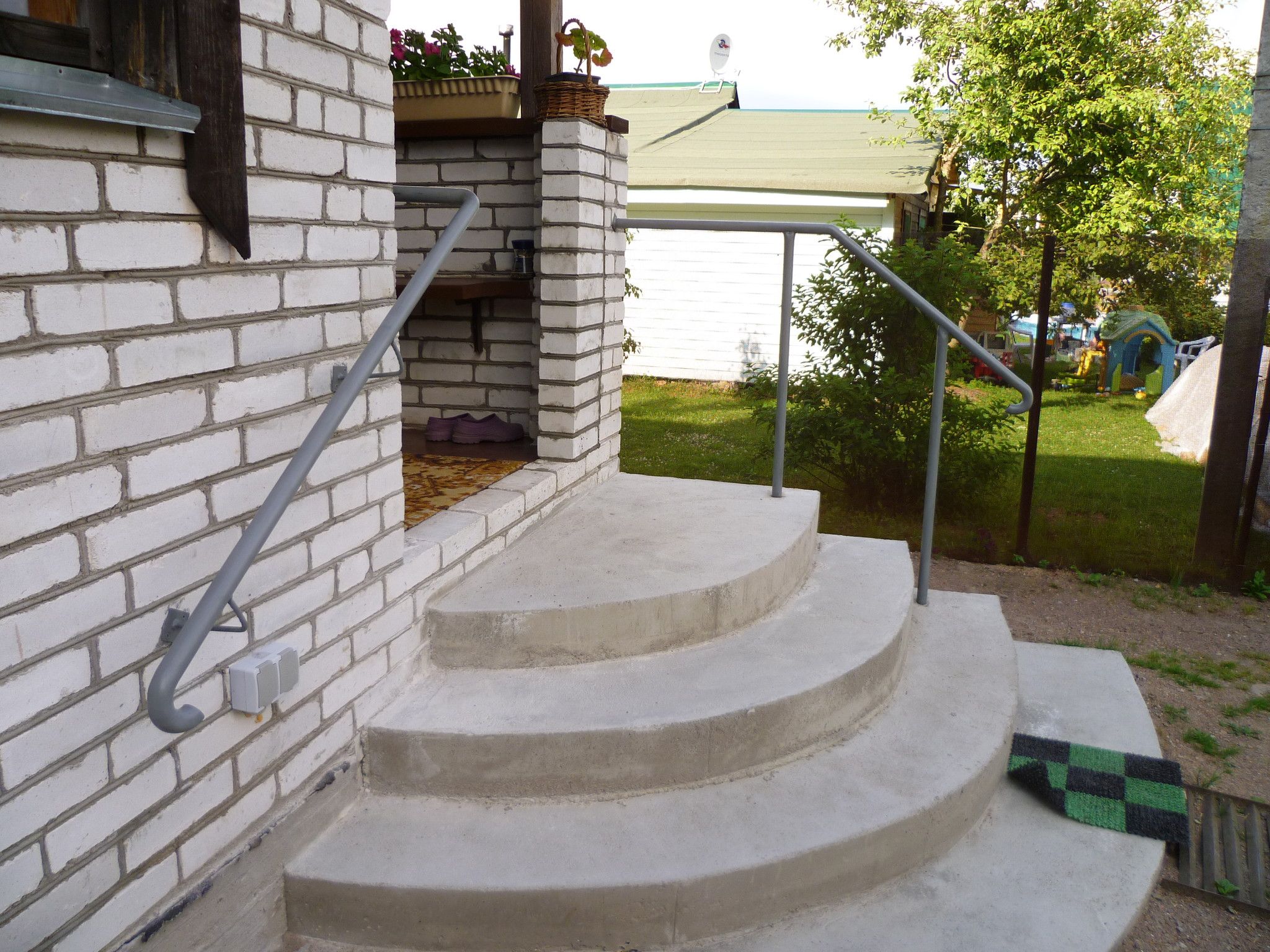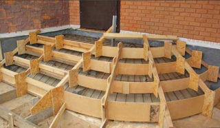 La disposition des marches en demi-cercle pour un porche en béton est simple et ne nécessite pas l'utilisation d'une large gamme de matériaux. Aucune compétence de construction particulière n'est requise.