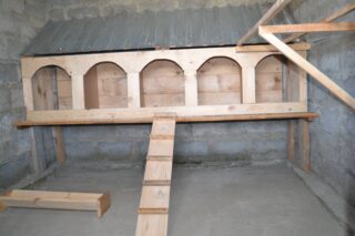 - Sur pilotis. Structures stationnaires. L'élévation au-dessus du sol assure la sécurité du bétail contre les inondations, l'endormissement avec la neige, la pénétration de rongeurs et de petits prédateurs dans les nids. L'endroit sous l'élévation est optimal pour la marche et le stockage pour l'alimentation.