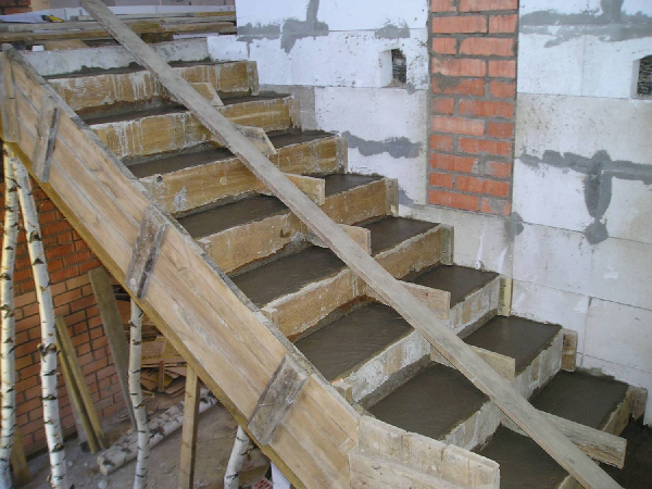 - le béton est coulé à partir des marches inférieures;