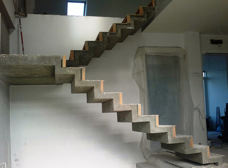 Les escaliers en béton peuvent être monolithiques ou préfabriqués. Les structures monolithiques sont coulées avec les zones interplanchers. Pour cela, un coffrage complexe est installé, à l'intérieur duquel un treillis d'armature est fixé à partir de sections connectées d'armature en acier. Les travées préfabriquées comprennent les volées d'escaliers et les zones interplanchers. Chaque élément structurel est fabriqué séparément et installé à sa place à l'aide d'un équipement de levage.
