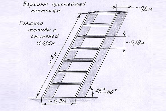- la pente de la travée ne doit pas dépasser 20 ° - 75 °, mais une pente supérieure à 50 ° est utilisée pour les escabeaux et les modèles attachés.