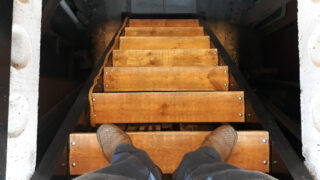 Sur les poutres métalliques, le cadre de la marche est soudé à partir du coin, mais le remplissage est fait de planches. Des caillebotis en fer sont installés sur des surfaces en béton pour éviter de glisser.