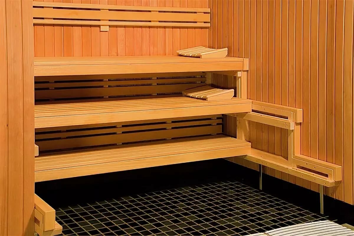 - Dans le sauna, l'espace vertical entre les sièges du 1er et 2e niveau ou 1er niveau et le sol est également cousu. Cela ne doit pas être fait dans un hammam.