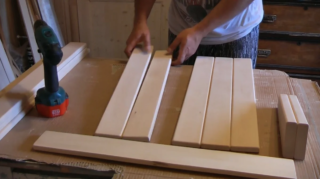 - Sur une surface plane, posez au moins 3 planches de 10 cm de large, face vers le bas.A partir des extrémités entre les rails, des inserts de 1 cm d'épaisseur sont placés de sorte qu'un espace reste lors de l'installation.