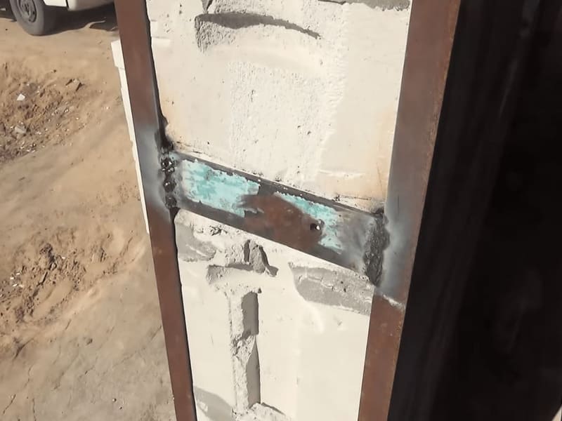 Le caoutchouc est posé pour sceller après avoir soudé le métal, installé des raccords, pour enfin fabriquer la porte en fer. Des trous sont percés sur les parties supérieure et inférieure de la boîte pour accueillir les ancrages de fixation lors de l'installation du bloc de porte dans l'ouverture du mur.