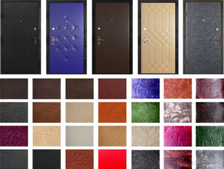Le film PVC appartient au groupe des revêtements de qualité pour portes en acier. Le matériau ne se décolore pas au soleil, il a une couleur stable. De telles surfaces sont faciles à nettoyer, ne se détériorent pas à cause de l'alcool, des alcalis, leur composition ne contient aucun composant nocif pour l'homme.