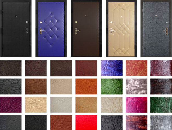 La première option est populaire et peu coûteuse. La surface, finie avec un substitut de cuir artificiel, est presque sans entretien, suffisamment durable contre l'abrasion. Le matériau est disponible en différentes couleurs et textures.Pour le rembourrage, des vis autotaraudeuses sont utilisées ou la toile est collée au fer avec des adhésifs spéciaux.
