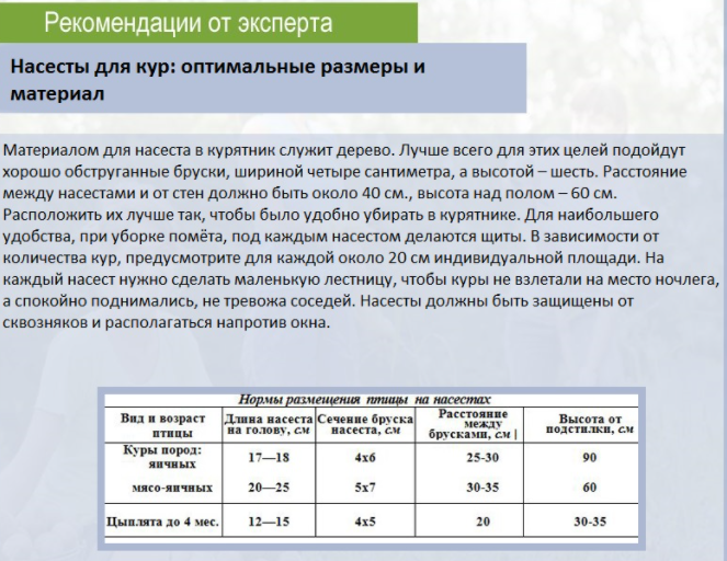 La hauteur des poteaux doit être comprise entre 40 et 100 cm. Si elle est inférieure, les poulets ne bénéficieront pas d'une activité physique appropriée et s'affaibliront. Le levage excessif est lourd de blessures et même de mort si l'oiseau tombe.