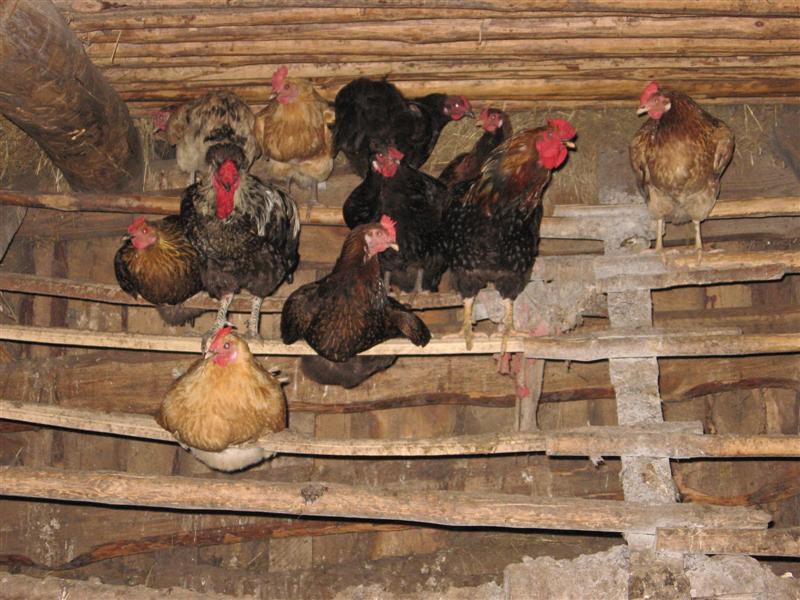 - Les poulets sont des animaux grégaires, mais préférant avoir leur propre espace de vie. Dans le froid, ils s'égarent en groupes et en été, ils dorment séparément.