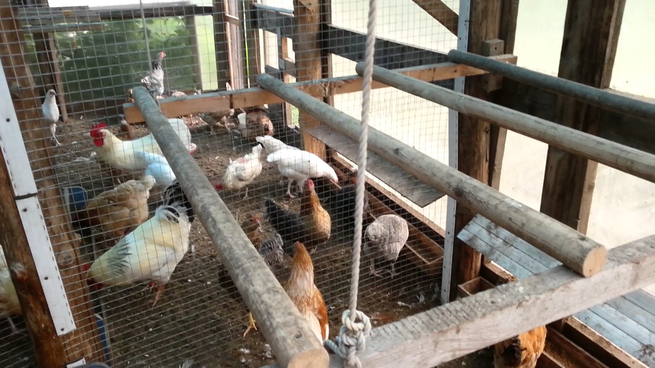 - Levage. Les poteaux ne sont pas fixés de manière rigide, mais sont attachés avec des cordes au plafond. Lorsque les poules quittent le poulailler, les barreaux se dressent, les propriétaires peuvent librement s'occuper de l'entretien des lieux. Une solution universelle pour les bâtiments de toute taille.