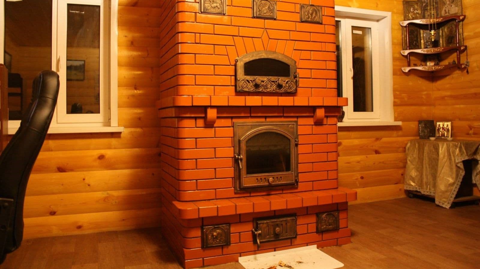 - Pour le chauffage. Initialement, ils sont destinés au chauffage d'une pièce, dans la plupart des cas ils servent également d'élément décoratif. Les murs lisses sont décorés de tuiles, de clinker ou de tuiles.