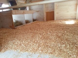 En hiver, une litière épaisse de 15 cm ou plus est posée sur le sol.Tourbe, sciure de bois, petits copeaux sont utilisés. Les matériaux sont mélangés pour améliorer les qualités. La tourbe est combinée avec de la paille hachée, une telle couche absorbe l'humidité, puis la restitue, donc elle régule son niveau dans l'air environnant. Il est préférable de prendre de la sciure de bois de conifères, car le bois résineux empêche la reproduction de micro-organismes nocifs.