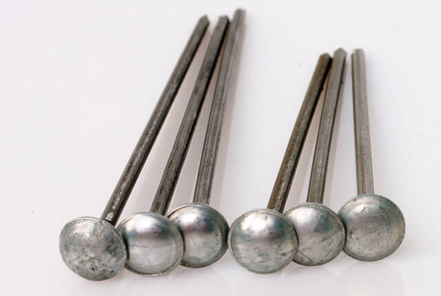 Les clous en ardoise sont plus épais et plus longs que les attaches classiques, le diamètre de leurs têtes atteint 1,4 cm.Pour assurer des propriétés anti-corrosion, les éléments ont un revêtement galvanisé. Le choix des clous dépend de la hauteur de la vague. De plus, l'épaisseur de l'élément de liteau est prise en compte. À la somme de ces indicateurs, ajoutez 1 cm supplémentaire.