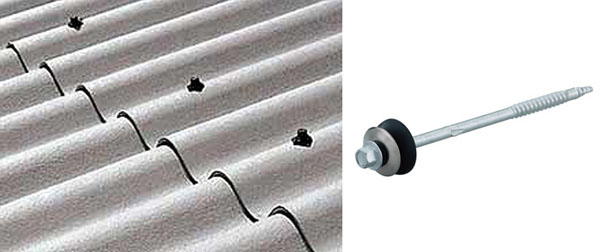 Des vis autotaraudeuses sont fixées aux ondulations extrêmes de l'ardoise dans chaque élément du revêtement.