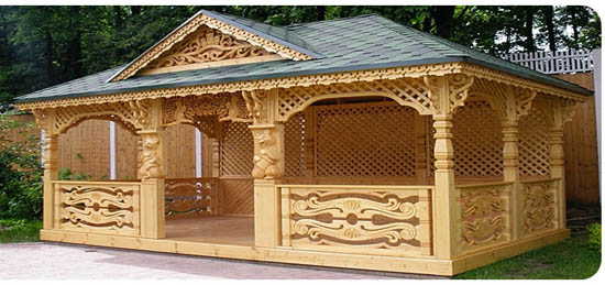 Le métal est moins utilisé, car il alourdit la structure, le gazebo semble encombrant. Le bois spécialement traité est durable et crée une sensation de légèreté. Les essences de bois ont des propriétés différentes, diffèrent par leur qualité et leur couleur.