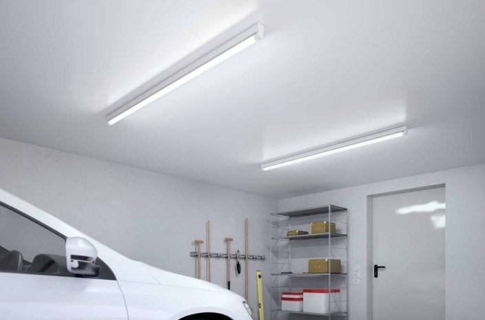 En termes de performances, c'est l'une des meilleures options d'éclairage de garage. Les bandes et lampes LED sont souvent utilisées dans les zones non résidentielles et peuvent fournir une lumière chaude et froide. Ils sont insensibles aux températures négatives, à l'air humide, aux chutes de tension. L'installation de telles lampes dans le garage coûtera plus cher que d'autres options, mais elles consomment peu d'énergie (5-14 W) et peuvent fonctionner jusqu'à 25 000 heures.
