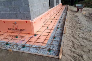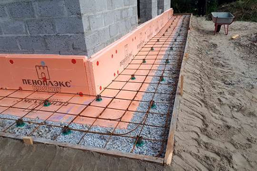 - Renforcez la zone aveugle. Il est préférable de l'utiliser dans une maille avec un diamètre de barre de 4 mm et une taille de maille de 10 * 10 cm.Une distance de 3 cm est respectée entre la couche d'étanchéité ou d'isolation et l'armature.Le treillis doit être prétraité avec un composé corrosif.