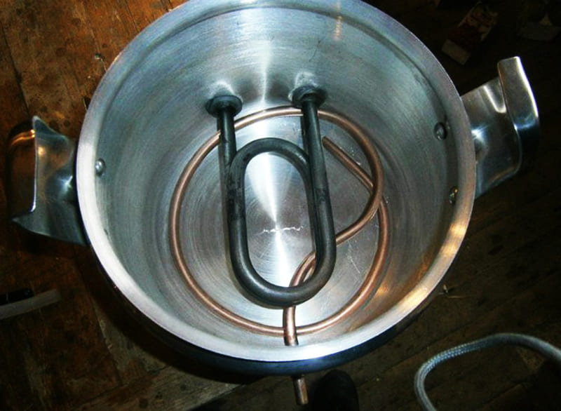 - induction - un circuit à travers lequel l'eau circule, se réchauffe en raison des courants d'auto-induction;