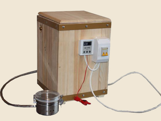 - Un manomètre et une soupape de sécurité sont fixés au couvercle coupé. Il est préférable de choisir un appareil avec un relais électrique pouvant éteindre les éléments chauffants lorsqu'une certaine pression est atteinte.