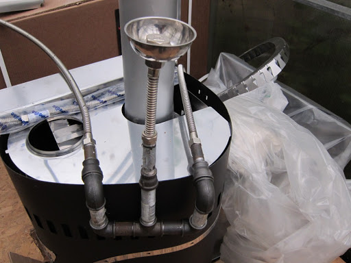 - Une conduite de vapeur est reliée à la vanne avec un élément d'étranglement.Ce rôle est joué par un fragment de 50 cm d'un tuyau en acier avec des trous de 2-3 mm de diamètre. L'élément permet à la vapeur de s'échapper légèrement afin que celle-ci ne s'échappe pas du tuyau sous une pression trop élevée.