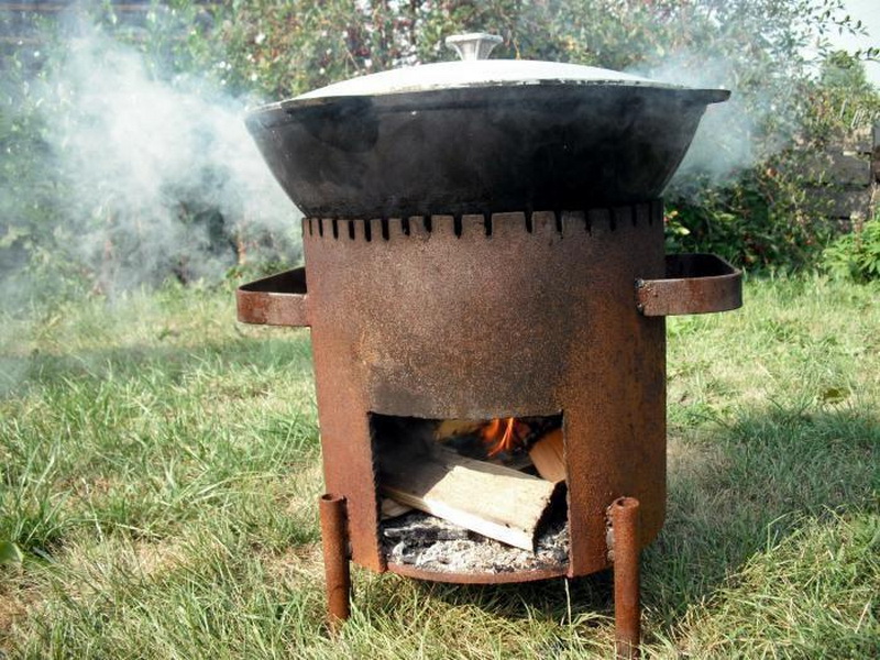 Si le propriétaire possède un vieux poêle en acier qui perd de la chaleur en brûlant, vous pouvez lui donner une nouvelle vie en le recouvrant d'un matériau réfractaire écologique (brique ou pierre naturelle). Vous pouvez le combiner avec un tandoor.Cela ne fonctionnera pas pour transférer une telle structure d'un endroit à l'autre, mais c'est parfait pour cuisiner sur un feu ouvert.