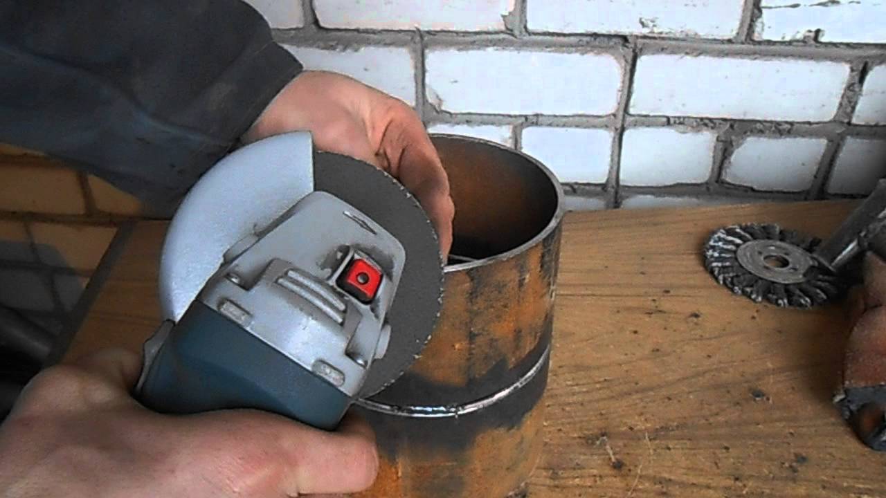 Un fragment d'un tuyau aux dimensions requises est traité avec une meuleuse avec une buse de dénudage, en alignant les bords. Les bavures sont enlevées avec une lime. À l'avenir, la séquence de travail ressemble à ceci: