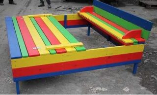 Ils peignent les détails du bac à sable dans différentes couleurs, de préférence vives.Diverses images peuvent être dessinées à l'aide de pochoirs et des figures de personnages de contes de fées peuvent être découpées dans du contreplaqué, peintes et fixées sur les parois latérales de la boîte.
