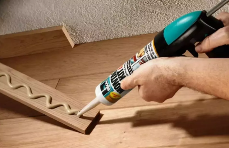 De cette façon, vous pouvez mettre n'importe quel type de plinthe, et pour les panneaux en polyuréthane, c'est la seule possible. La colle est appliquée sur une zone propre et sèche exempte de saleté et de poussière. De plus, la surface est dégraissée avec un composé recommandé par les fournisseurs d'ongles liquides.
