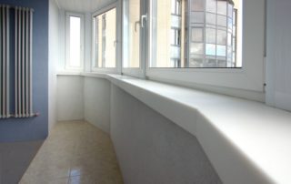 La largeur du rebord de la fenêtre dépend de l'épaisseur du mur, mais parfois la taille est augmentée pour obtenir une étagère fonctionnelle, un plateau de table. Les réparations modernes sur la loggia sont combinées au démontage des structures murales, à la pose de nouvelles, à l'isolation et à l'installation de radiateurs. Un rebord de fenêtre de largeur accrue est monté de manière à ce que son plan chevauche le haut du mur et recouvre la niche au-dessus du radiateur, le cas échéant.