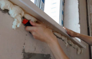 Une planche de rebord de fenêtre est placée sur la mousse si sa largeur est faible et qu'elle ne dépasse pas beaucoup au-delà du plan vertical du mur. Remplissez les espaces entre le rebord de la fenêtre et le parapet du mur. Des poids sont placés sur la surface du panneau des deux côtés et au milieu afin que la planche ne se soulève pas pendant que la mousse se solidifie. Soulager le stress après séchage (en une journée).