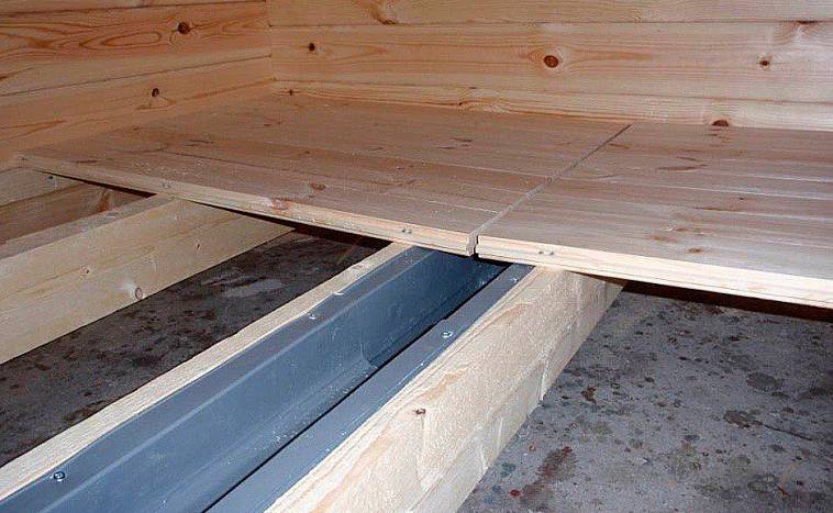 Si vous devez réaliser un sol avec une pente, il est préférable de réaliser une chape en béton sous le parquet. On lui donne une pente de 5°, un col collecteur est équipé en partie la plus basse et l'eau est drainée dans une fosse ou un égout. Un tel sol peut également servir de rez-de-chaussée, mais il n'est pas particulièrement agréable de sentir en permanence du béton froid (même poli) sous les pieds. Tout d'abord, il est nécessaire d'isoler la structure en recouvrant le sous-plancher d'argile expansée ou de laitier, puis de remplir le tout d'une chape en béton. Des carreaux de céramique ou une doublure sont posés sur le dessus, une échelle en bois est posée sur le dessus.