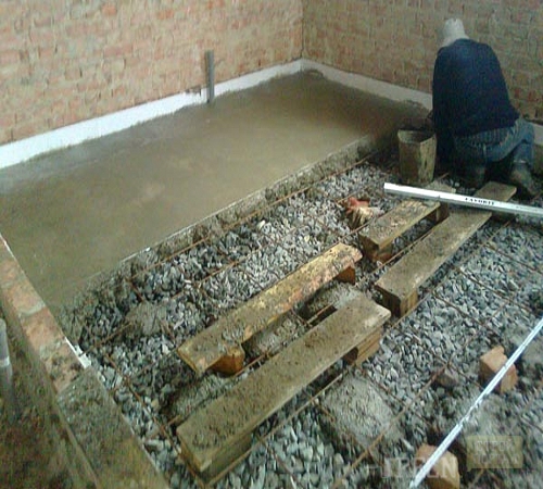 Le remplissage de la chape avec une finition ultérieure est une méthode populaire pour aménager le sol dans les maisons en briques et en parpaings.