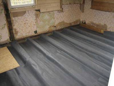 Si le linoléum est posé immédiatement sur une chape en béton, le mélange s'effondrera progressivement et des dépressions apparaîtront à la surface du linoléum. Avant de poser le linoléum, un substrat en panneaux de fibres ou en liège est monté.