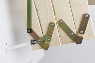 La principale caractéristique de l'échelle coulissante est qu'après utilisation, elle peut être facilement pliée sous le couvercle de la trappe. Cela ne gâchera pas l'apparence, car il n'est abaissé que pendant le fonctionnement. C'est pratique quand il y a peu d'espace dans la pièce.