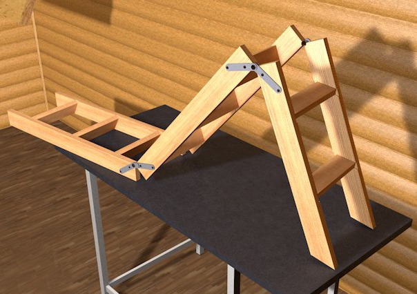 Une échelle pliante à faire soi-même jusqu'au grenier est la meilleure option pour les maisons de campagne, ce qui vous permet de gagner de la place et de ne pas gâcher l'intérieur.