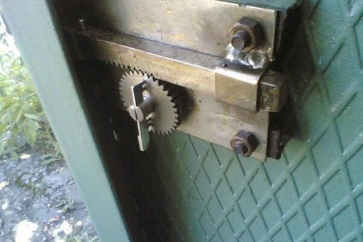 Un mécanisme de verrouillage avec un loquet transversal peut également être réalisé. Fixez-le par soudage. Vous pouvez faire un trou dans le volet mobile ou y souder un morceau de tuyau. Un loquet est inséré dans le trou résultant, engageant le montant de support. Situé en travers du plan de déplacement de l'ouvrant, il fixe la structure en position verrouillée. Comme la version précédente, ce mécanisme est conçu pour fermer le portail de l'intérieur.