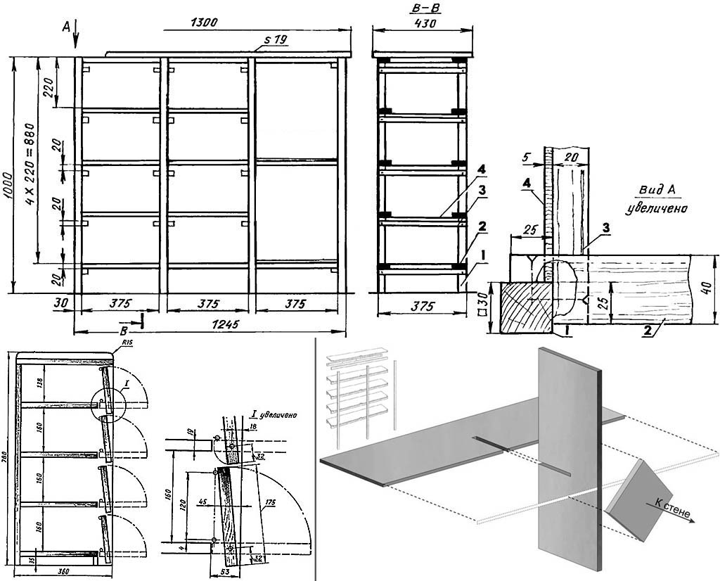 Le schéma pour fabriquer des étagères dans la cave de vos propres mains à partir de planches est le suivant: