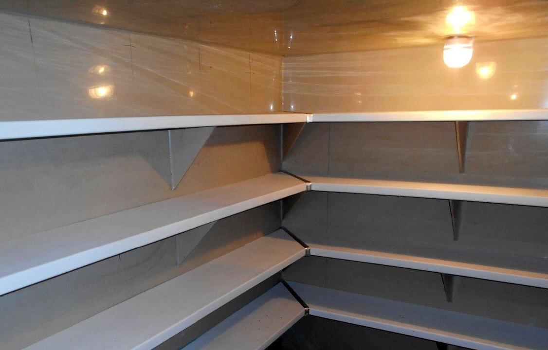 Pour équiper facilement un sous-sol pour stocker des produits agricoles, il est recommandé de combiner les matériaux des étagères et de placer des étagères dans différentes zones de la pièce.