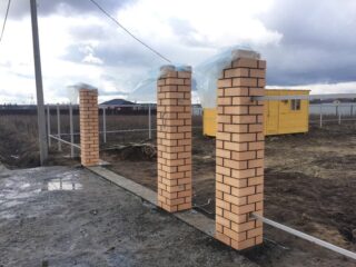 En règle générale, les piliers sont disposés en briques de 1,5 ou 2 avec un indicateur de section de 380X380 mm ou 510X510 mm. La hauteur du bâtiment peut atteindre 3 mètres. La pose est effectuée avec le déplacement des joints de la rangée inférieure, qui est recouverte par la rangée supérieure de briques. La couture est standard - 8-10 mm.