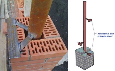 Les poteaux de porte en brique agissent comme un élément de design. La charge électrique est portée par le noyau métallique, qui est la base de la structure. Son rôle peut être un tube carré profilé, une conduite d'eau ronde ou une tige de forage, ainsi qu'une structure en béton armé.