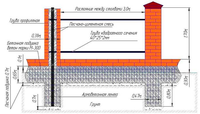 Vous devez fixer le pilier en brique en approfondissant le renforcement dans le sol. Sans cette règle, la structure tombera.