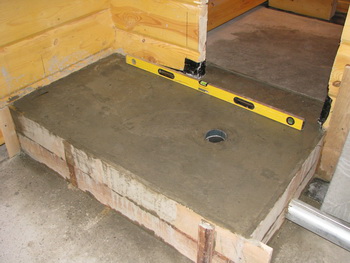 - Une dalle monolithique de béton est construite sur un coussin de sable.