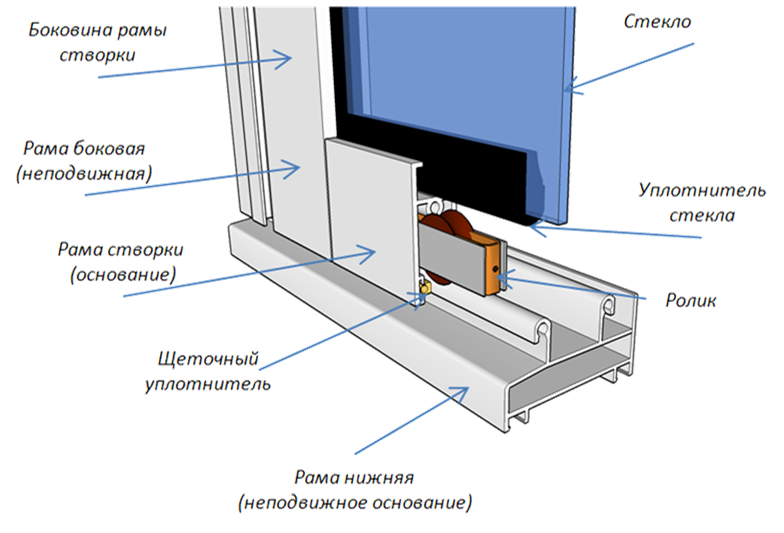 Extérieurement, les systèmes coulissants ne diffèrent pratiquement pas des modèles pliants, articulés et sourds. Ils ont des cadres, des fenêtres à double vitrage et des poignées. Ils sont fabriqués à partir de profils similaires. La seule différence réside dans le mécanisme d'ouverture. Les structures coulissantes se déplacent latéralement le long des rouleaux qui se déplacent le long des guides supérieur et inférieur.