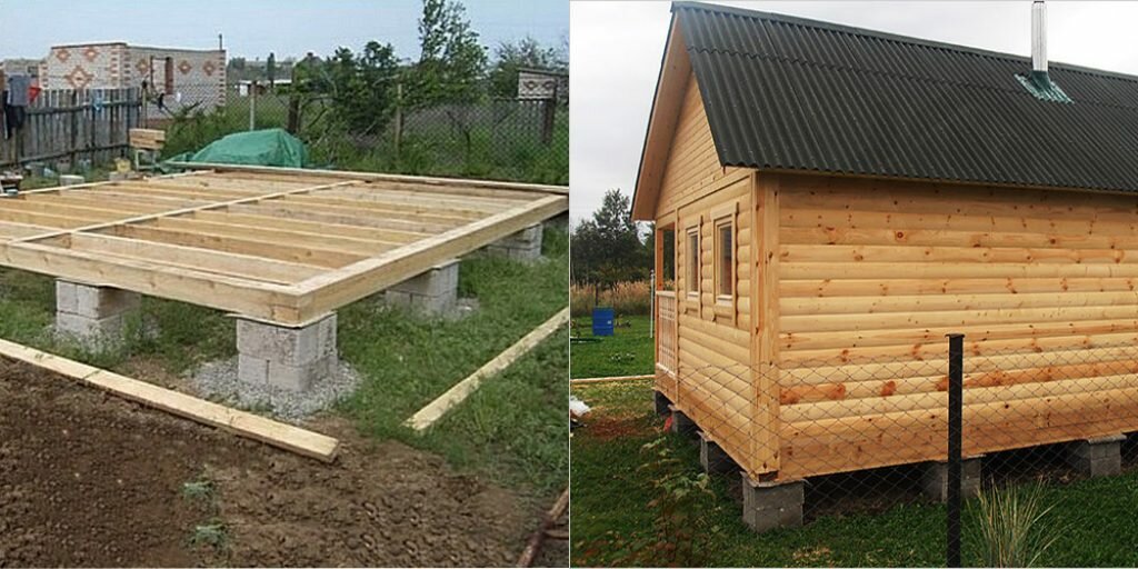 La maison en rondins ne pèse pas très lourd, c'est pourquoi une fondation légère est en cours de construction. Lequel dépend de la nature du sol.
