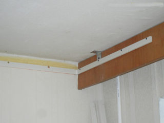 L'installation est simple : une baguette est vissée sur le pourtour de la pièce. La pièce elle-même doit être chauffée à 60 ° C. Le produit est fixé dans les coins, après quoi ils commencent à le tirer. La toile doit être correctement tendue pour éviter l'apparition de vagues, plis et autres défauts. Puisqu'après avoir terminé le travail, un écart technologique subsiste entre le mur et la toile, il peut être fermé avec un socle.