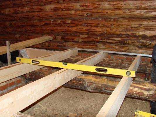 - Du bas aux bûches, un sol rugueux est cloué à partir de planches non planifiées. Pour réduire le coût, il est permis d'utiliser du bois non rogné.