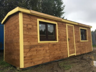 Les murs sont recouverts à l'extérieur de planches à clin, de revêtement en plastique et d'autres matériaux de finition peu coûteux.