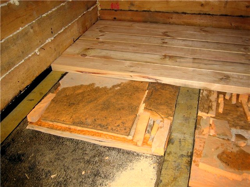 Le moyen le plus simple d'isoler le sol dans un bain de vos propres mains consiste à utiliser des caillebotis en bois faits maison ou achetés. Cependant, vous devez d'abord vous assurer qu'il n'y a pas de clous qui dépassent et qu'il n'y a pas d'autres défauts.